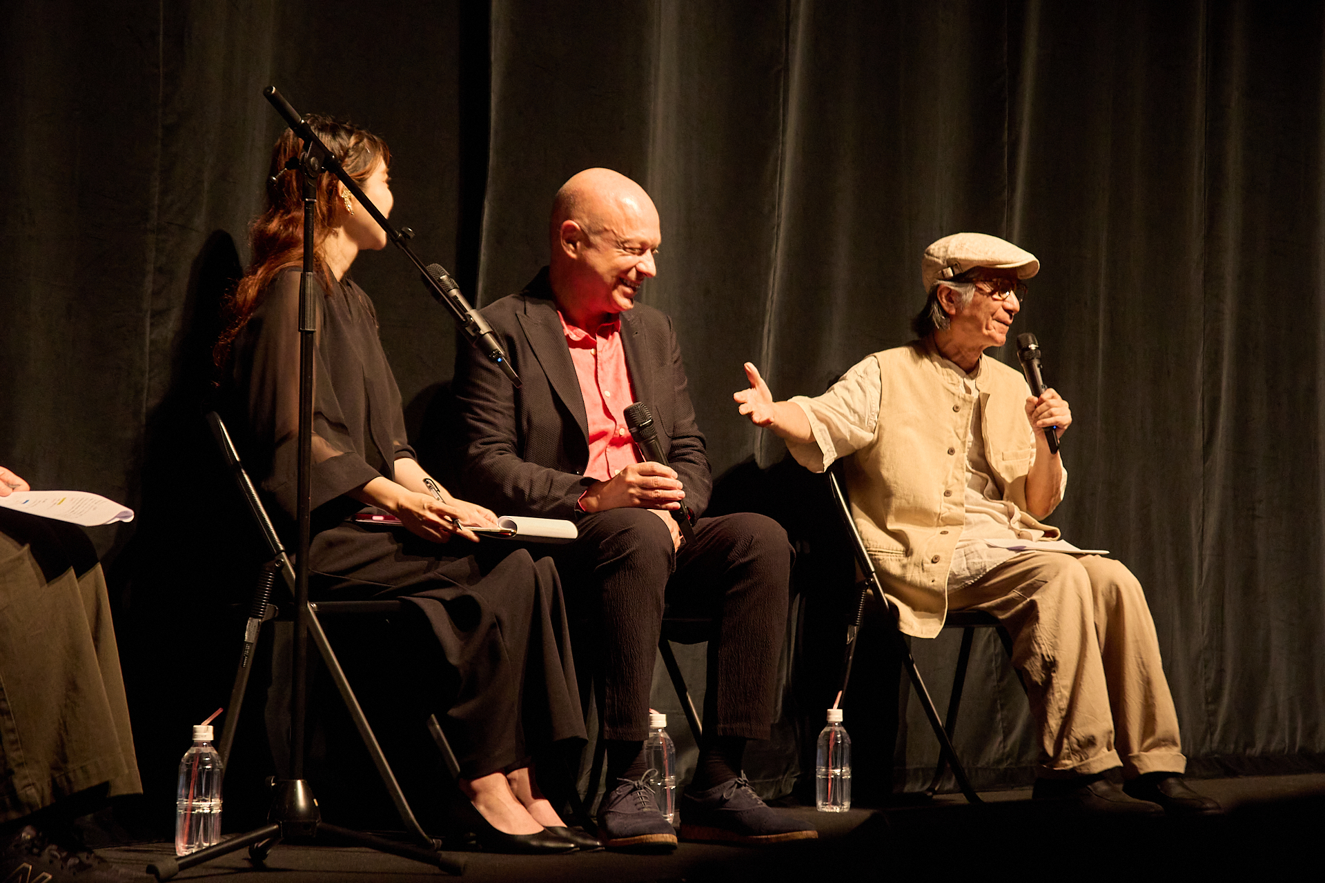 上映前のスペシャル・トークイベントに、ピーターの息子で、この修復プロジェクトを手掛けたサイモン・ブルック(映画監督、通訳:大木シエキエルチャック絢深)、土取利行(『マハーバーラタ』音楽監督)が登壇。山口宏子(朝日新聞記者)が司会をつとめた。