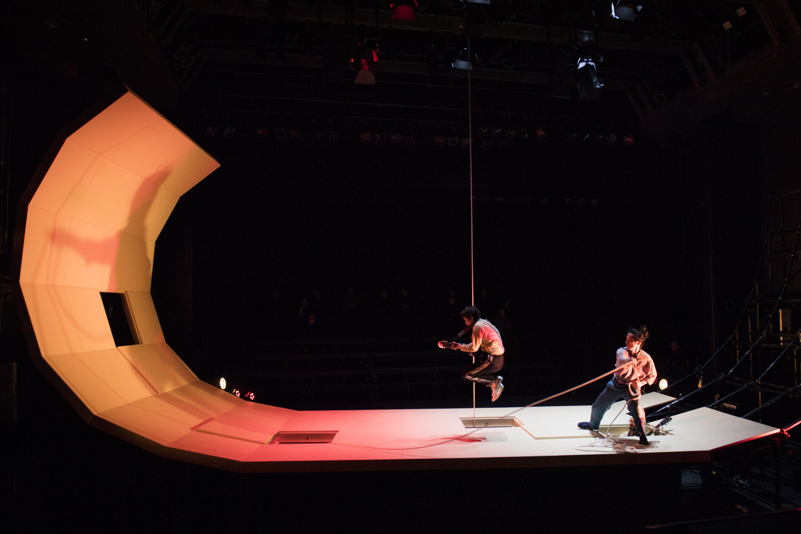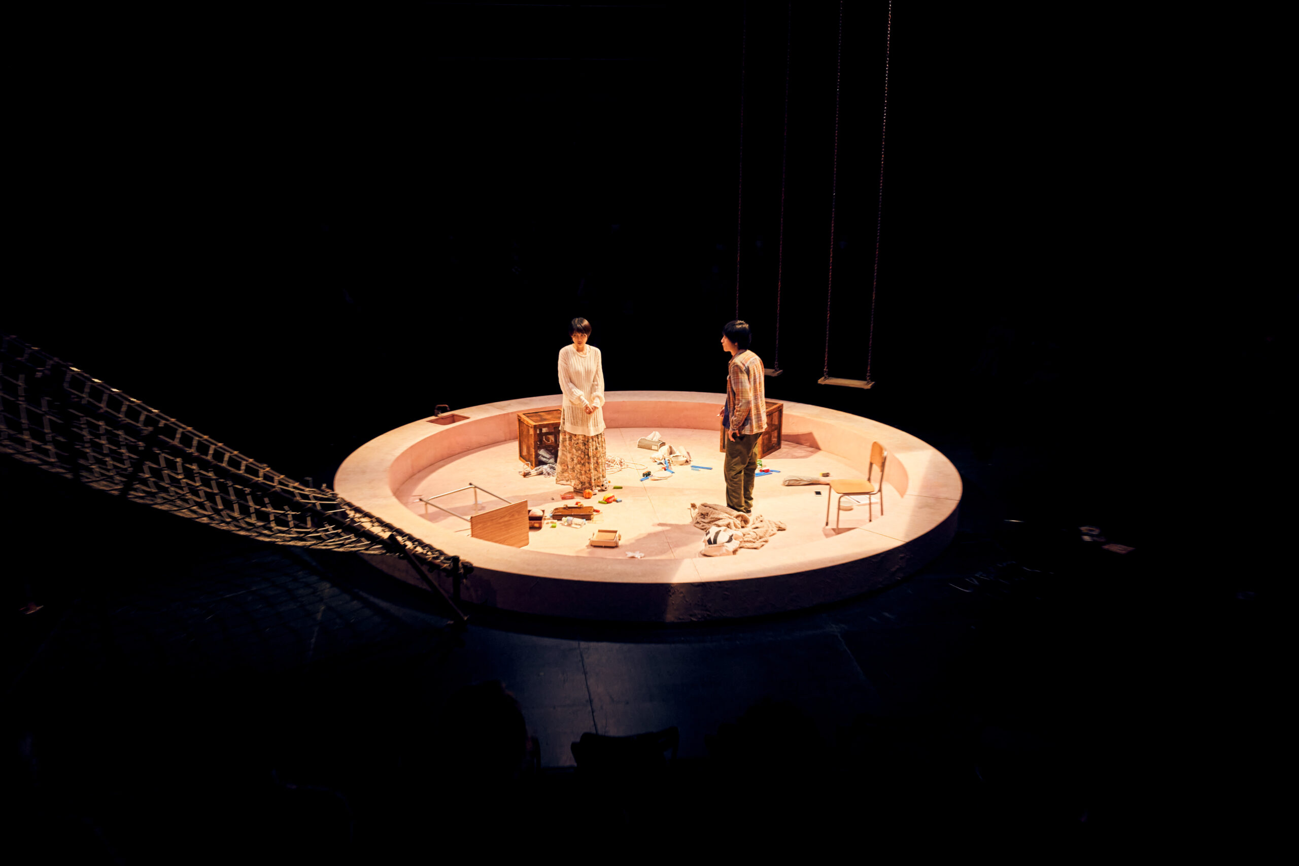 はい。台本が半分ほどできた段階で痺れを切らした私が勝手にアイデアを練り(笑)、模型を作って行ったらそのアイデアを気に入ってくれたという感じです。稽古場には仮の美術を入れてもらったんですが、池田さんと舞台監督が、まるでおもちゃを与えられた子どものように美術で遊んでいたのを今でも覚えています。池田さんはいつも想像を超えた美術の使い方をしてくれるのがおもしろいんです。その後も『娘』『あかあか』『ハートランド』などでご一緒しましたが、池田さんの空間の使い方にいつも驚かされていました。毎度どんな風に劇場を使ってくれるだろうとワクワクさせてくれる存在ですね。