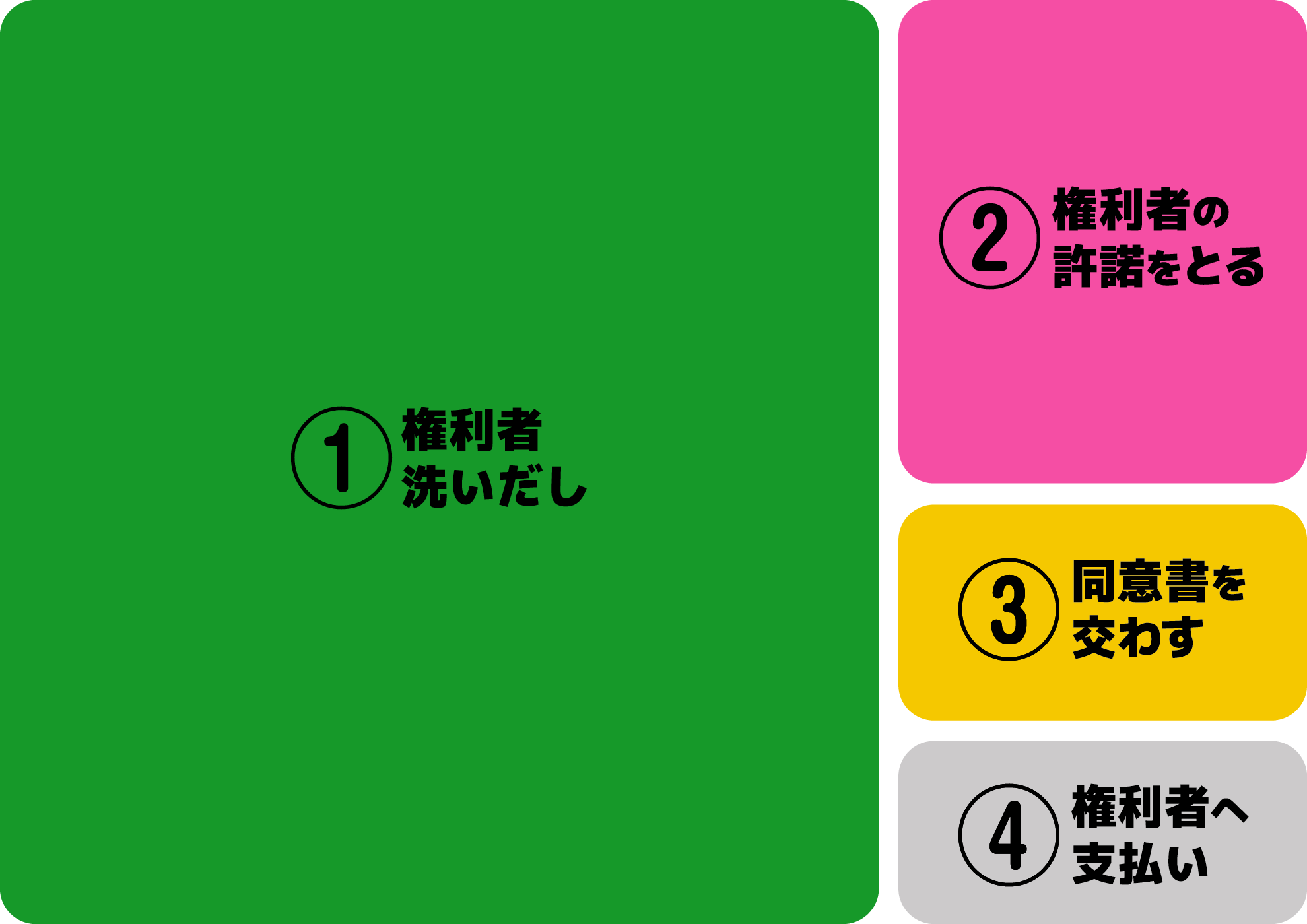 ※実際には、許諾内容や条件を記した書面を権利者と交わします。